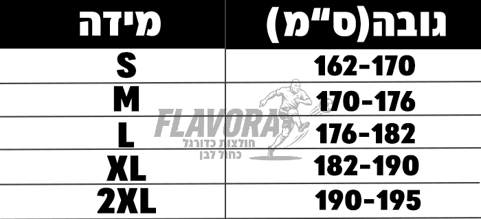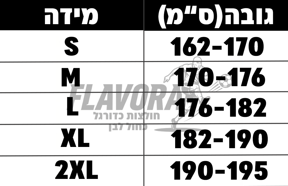 במידה ויש התלבטות בין מידות – מומלץ לקחת מידה אחת יותר.